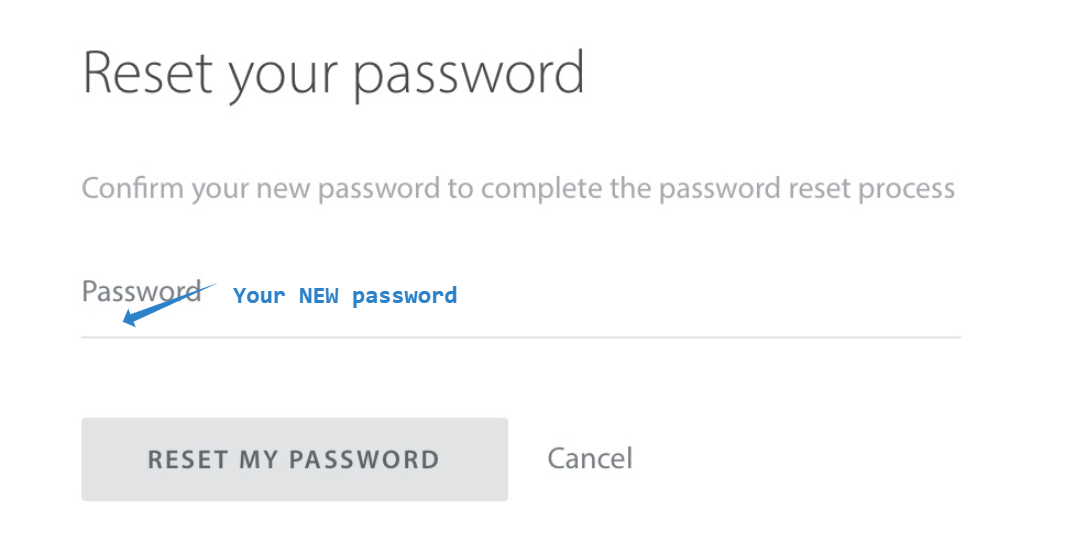 Enter the new password you just created and click "Reset my password"