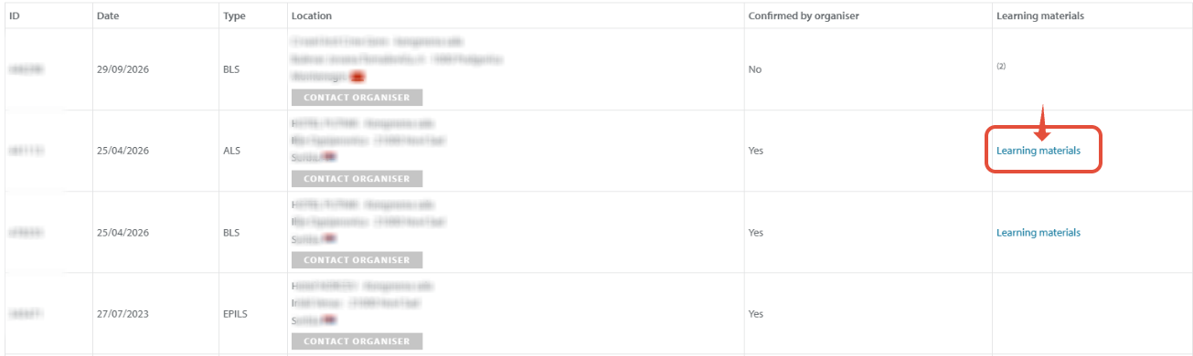 Step 3: look for the correct course type and course date